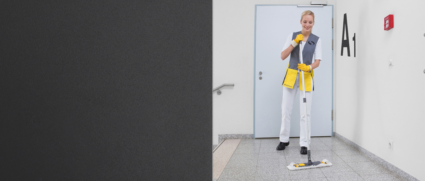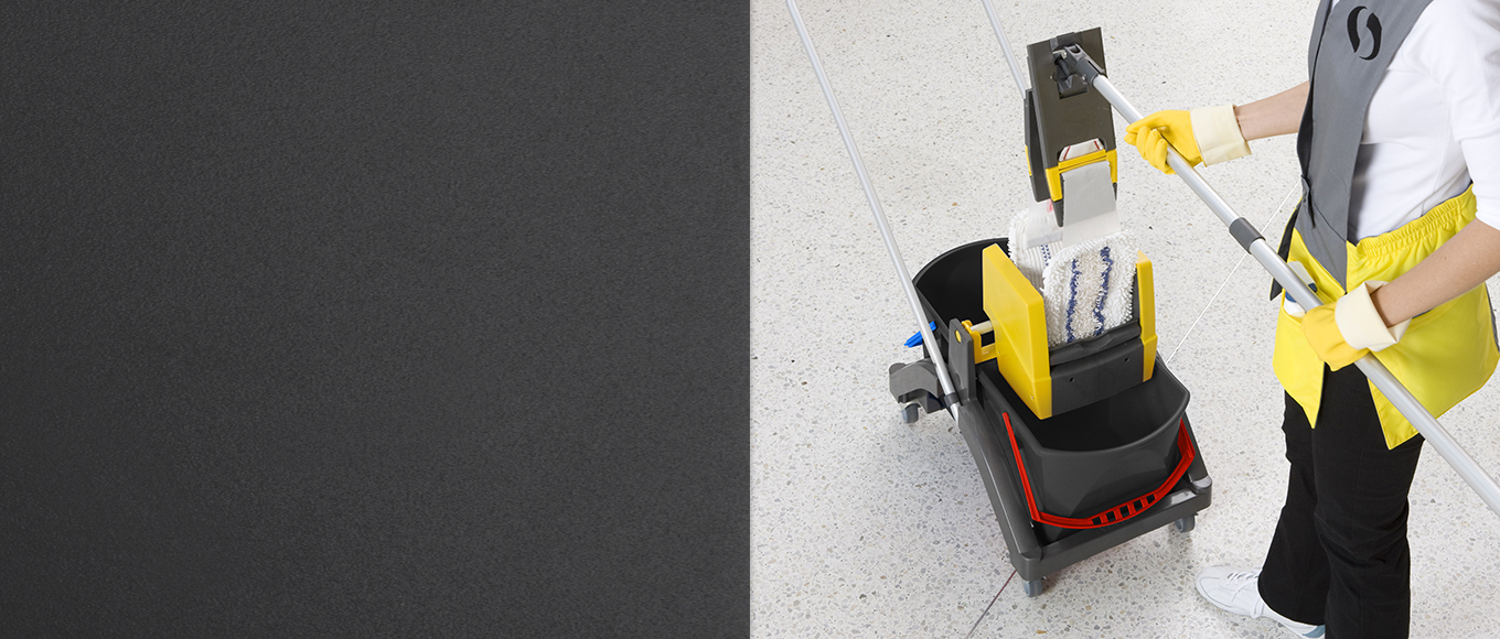 The Clipper system makes light work of heavily soiled floors. The system comprises a Clipper holder, mop cover with loops and a VK4 wringer or wet mop trolley.