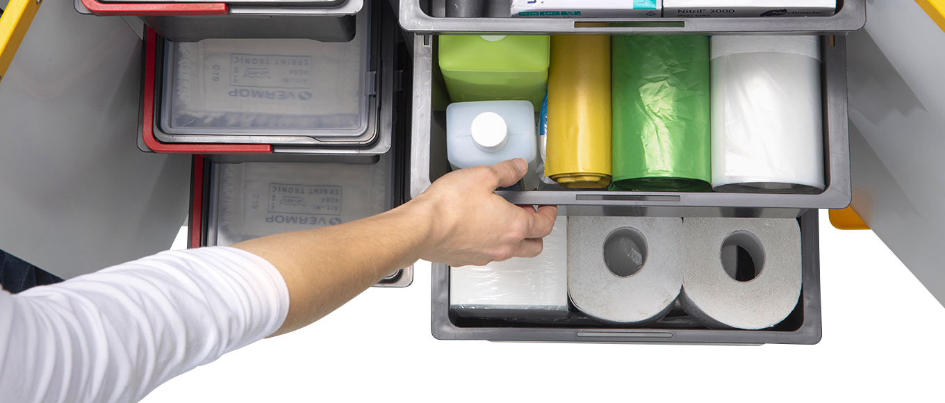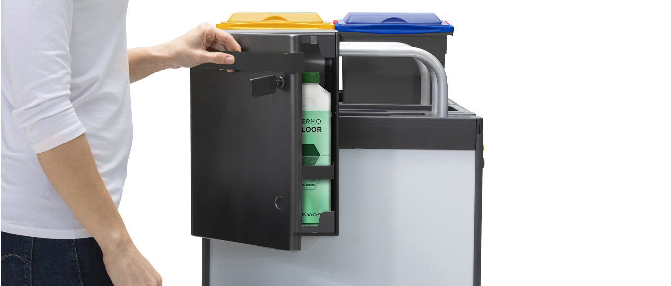 Equipe sets the benchmark for enclosed cleaning trolleys. Its premium design is as impressive as its smart configuration concept, giving users more than a million settings to choose from. Scaling from small to large, Equipe trolleys effortlessly master every cleaning mission – no matter how challenging the space or task.