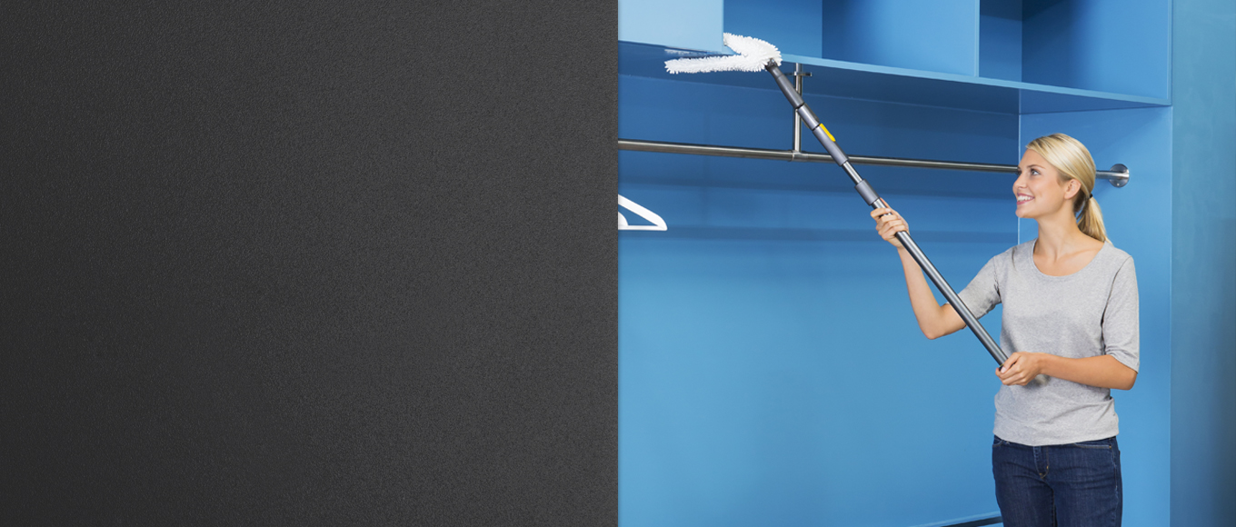 The Scandic X telescopic handle makes light work of all cleaning jobs with its “must-have” ergonomic design. You can set the handle to the length you need in just one click without any annoying twisting movements (scaling from 80 cm for cleaning mirrors to 171 cm for working overhead). The attachments glide over floors, remove dust from surfaces and effortlessly clean ceilings.