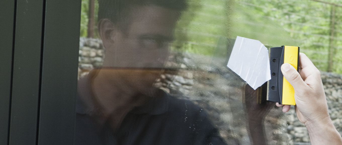 When combined with the right flexible telescopic handle, the LockHead squeegee allows you to work safely overhead or on very tall windows. The Glassman safety scraper made of Solingen steel can be used to effectively remove stickers, encrusted dirt and paint residue from glass surfaces. Glassman is a real eye-catcher and is extremely safe as it is designed to fit more ergonomically in the hand than other scrapers. It can also be attached to the LockHead grip for even safer handling.
